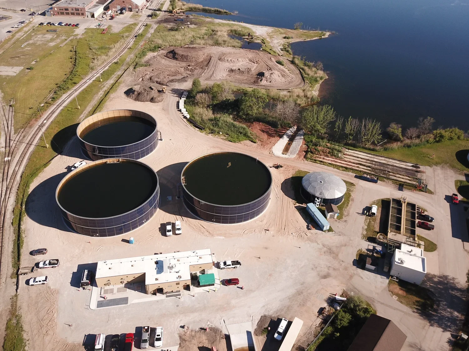 Recent improvements to the City of Manistee’s Clean Water Recovery Facility (CWRF) involved the construction of a new headworks facility. Spicer Group was responsible for providing funding assistance, surveying, engineering design, bidding services, construction oversight, and construction inspection for the project. The headworks facility included three 2-million-gallon, above-grade, steel storage tanks with concrete bottoms and foundations as well as a headworks building housing primary treatment comprised of metering, screening, grit removal and pumping. The headworks building is approximately 44ft x 112ft. About 60% of the building is below grade with concrete construction 20ft - 30ft below the water surface of the adjacent lake.